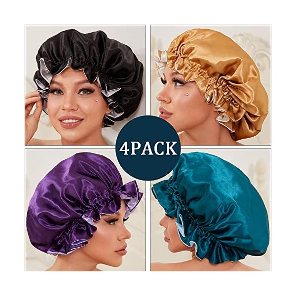 Hair Bonnets For Black Women Curly Kinky Hair Locs And Braids Double Layer Stretch Satin Protective Sleep Cap Pink Ola