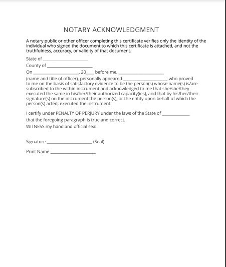 Notary Acknowledgement Form Etsy